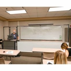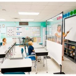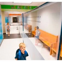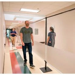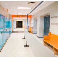 Great for physically separating people, creating extra walls, dividing hallways and creating one way traffic . Featuring a 1/2 clear – 1/2 solid white vinyl barrier that allows you to feel safe without feeling isolated. Designed to sit on the ground and create barriers around desks, in front of lecterns, for separating lines, hallways, and anything in between!