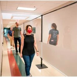 Great for physically separating people, creating extra walls, dividing hallways and creating one way traffic . Featuring a 1/2 clear – 1/2 solid white vinyl barrier that allows you to feel safe without feeling isolated. Designed to sit on the ground and create barriers around desks, in front of lecterns, for separating lines, hallways, and anything in between!