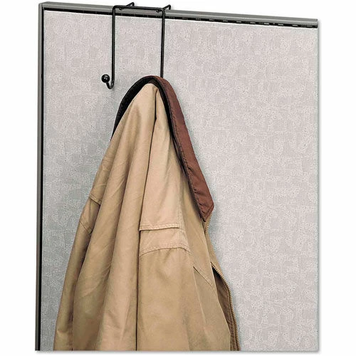 Smart and simple solution for additional storage space. Contemporary wire design. Double hook for coats, umbrellas and bags. Partition mount only. 100% recyclable.
