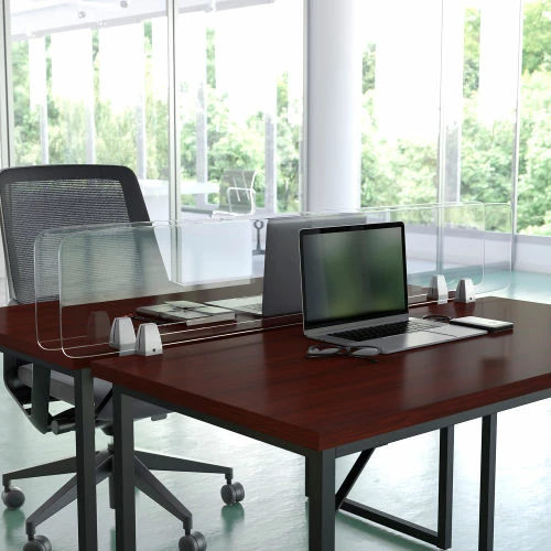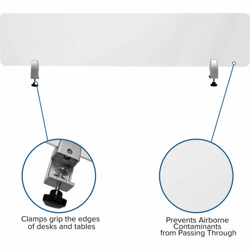 Great for school and office desks, this cough guard will create ways for individuals to have meaningful face to face conversations while helping to mitigate the risks. Adjustable clamps can be easily loosened and remounted in a different location when different configurations are needed. For those in high demand environments in close proximity to others, this shield is a must have. This clear desk shield is transparent to allow first hand discussions essential for student achievement and may help lessen the emotional toll of social distancing. Enable staff and students alike to maintain personal interactions for a more enjoyable work and school day.