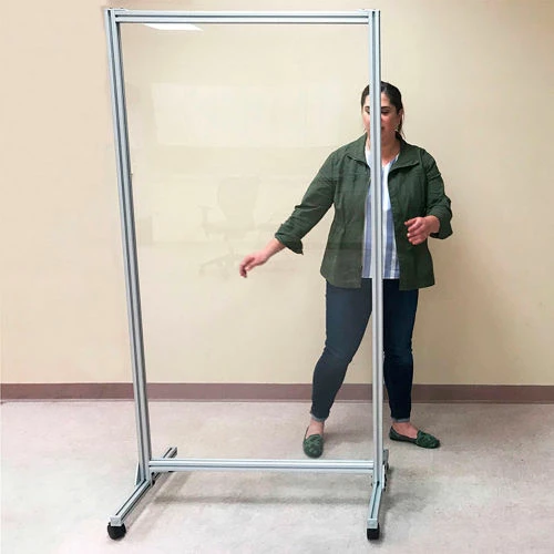 Our workplaces are ever-changing and during a time of a pandemic, essential businesses are facing health and safety challenges like never before. We have transformed our mobile board into a space divider that employees can use as an extra margin of safety during the health screening process. This mobile divider is ideal for separating workstations without obstructing the view between employees. This clear mobile divider carries a 1 year manufacturer warranty and is made in the USA.