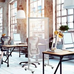Conveniently secure and divide the workspace in a more secure manner with Interion® Clear Mobile Dividers by Global Industrial™. They are suitable to use in virtually any room, from small classrooms and study rooms to large office cubicles. The freestanding divider can be placed on its own, aligned with another unit to create a divider for a larger workspace. The clear panel helps maintain safe division without visually isolating. Modern Silver finish blends well in commercial, school, or industrial settings. 1 Year Limited Warranty.