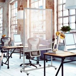When you need to secure and divide the workspace, the Interion® Clear Mobile Dividers by Global Industrial™ makes it easy. They are suitable to setup and place in virtually any room, from small classrooms and study rooms to office cubicles. The freestanding divider can be placed on its own, aligned with another unit to create a divider for a larger workspace. The clear panel helps maintain safe division without visually isolating. Modern Silver finish blends well in commercial, school, or industrial settings. 1 Year Limited Warranty.