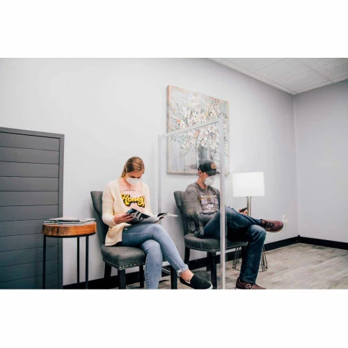 Personal safety partition is clear and provides a physical separation shield designed to implement workplace controls as guided by OSHA. Minimize opportunity for contact with airborne contaminants while transitioning back into the workplace, retail, restaurant or food processing settings. Allows users to feel safe, comfortable and separated without impeding on décor or lighting. Constructed with flexible materials for minimal hindrance.