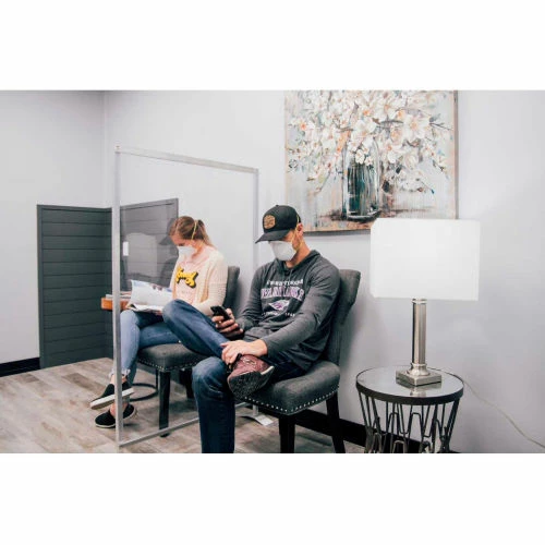 Personal safety partition is clear and provides a physical separation shield designed to implement workplace controls as guided by OSHA. Minimize opportunity for contact with airborne contaminants while transitioning back into the workplace, retail, restaurant or food processing settings. Allows users to feel safe, comfortable and separated without impeding on décor or lighting. Constructed with flexible materials for minimal hindrance.