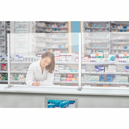 These freestanding add-ons provide extensions to barriers that are designed to shield workers and customers at kiosk stations, reception areas, and checkout lanes. Reliable and easy-to-setup 1/8″ thick acrylic base stands upright to block passages of airborne germs between customers and cashiers. Clear transparent finish allows easy visibility to ensure uninterrupted communication and transaction flow. Racetrack base maintains stability while occupying minimal surface counter space to allow placement for other products and items. Dimensions are 48″L x364″H.