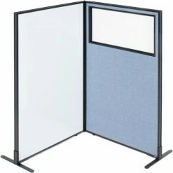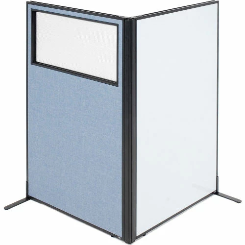 Interion By Global Industrial Interion® 2-Panel Corner Room Divider with Whiteboard & Partial Window, 36-1/4"W x 60"H, Blue