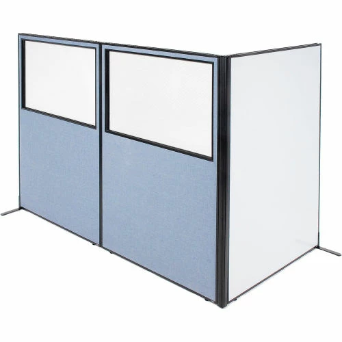 Interion By Global Industrial Interion® 3-Panel Corner Room Divider with Whiteboard & Partial Window, 48-1/4"W x 72"H, Blue