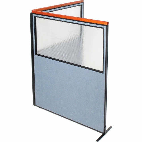 Interion By Global Industrial Interion® Deluxe Freestanding 2-Panel Corner Divider w/Partial Window 60-1/4"W x 73-1/2"H Blue