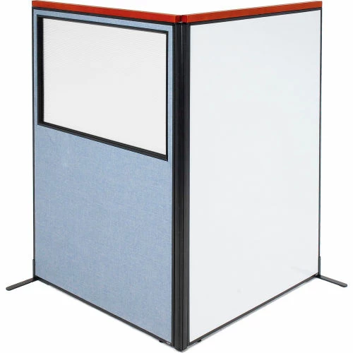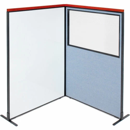 Interion By Global Industrial Interion® Deluxe Freestanding 2-Panel Corner w/Whiteboard & Partial Window 48-1/4Wx73-1/2H Blue