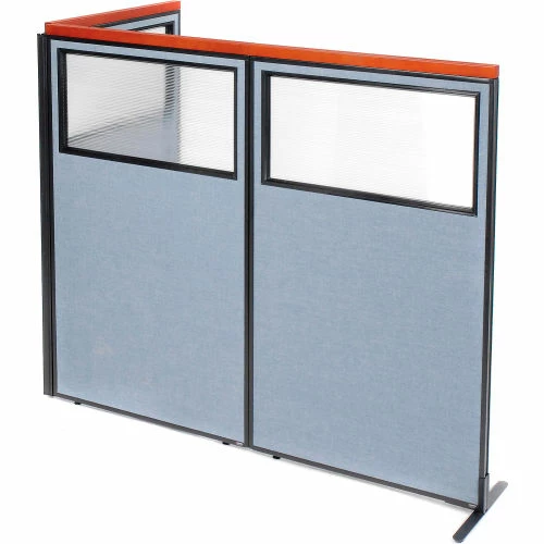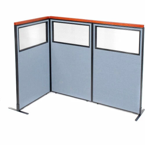 Interion By Global Industrial Interion® Deluxe Freestanding 3-Panel Corner Divider w/Partial Window 36-1/4"W x 61-1/2"H Blue