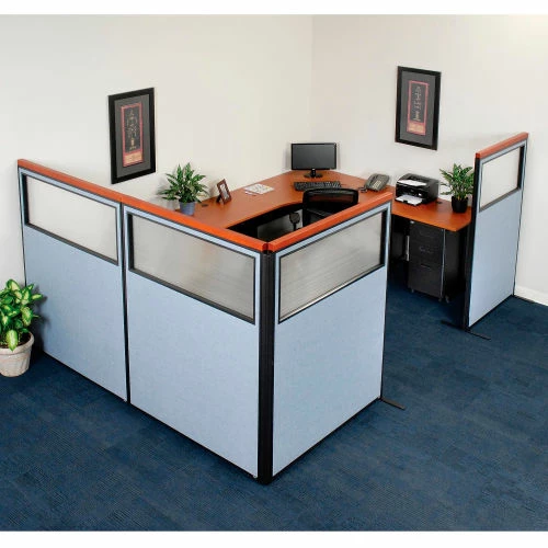 Section your office space with Interion® By Global Industrial Partition Panels. Whether you need to contain noise, enclose an office desk or block off a copy machine, these room dividers will make it easy and affordable. Partition Panels are flame retardant to meet the California 117 flammability standard. 1-3/4″ thick fabric upholstered panel features an interior engineered wood (MDF) frame and honeycomb core covered with heavy tackable liner for structural strength and support. Panel trim is finished with self-extinguishing extruded polymer that offers optimum safety and rigidity. Includes 3 Partition Panels with 5mm thick polycarbonate windows, steel T-legs for stability and all necessary hardware to create a 90 degree corner configuration. Translucent windows allow light in while still maintaining privacy, bringing an elegant and upscale look to any office space. Deluxe versions include a wood cap in cherry finish to elevate your office look. 1 Year Limited Warranty