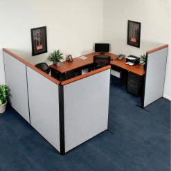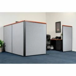 Section your office space with Interion® By Global Industrial Partition Panels. Whether you need to contain noise, enclose an office desk or block off a copy machine, these room dividers will make it easy and affordable. Partition Panels are flame retardant to meet the California 117 flammability standard. 1-3/4″ thick fabric upholstered panel features an interior engineered wood (MDF) frame and honeycomb core covered with heavy tackable liner for structural strength and support. Panel trim is finished with self-extinguishing extruded polymer that offers optimum safety and rigidity. Includes 3 Partition Panels, steel T-legs for stability and all necessary hardware to create a 90 degree corner configuration. Deluxe versions include a wood cap in cherry finish to elevate your office look. 1 Year Limited Warranty