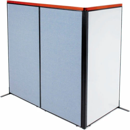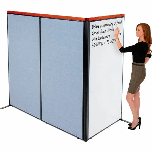Deluxe Freestanding 3-Panel Corner Room Divider with Whiteboard, 74-1/4″W x 73-1/2″H, Blue