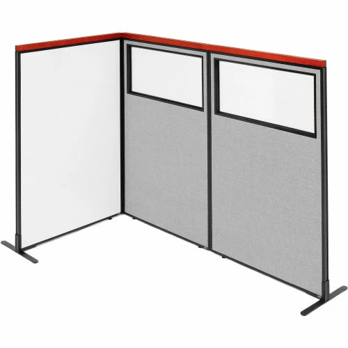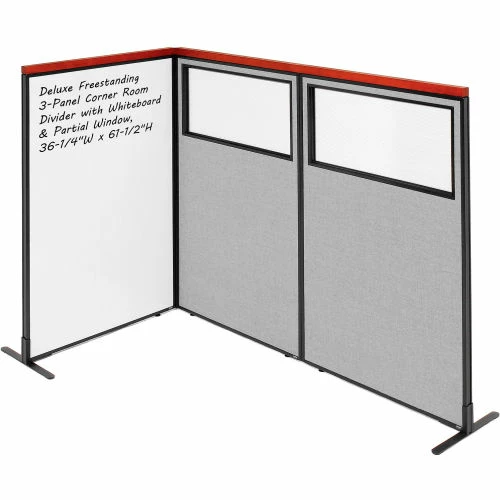 Interion By Global Industrial Interion® Deluxe Freestanding 3-Panel Corner w/Whiteboard & Partial Window 36-1/4Wx61-1/2H Gray