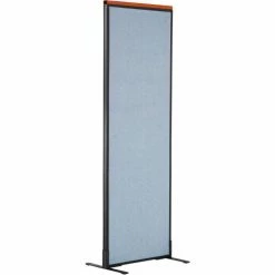 The Interion® By Global Industrial Deluxe Freestanding Office Partitions provide versatile privacy for cubicles, reception spaces, call centers and more. Panels feature a wood accent which attaches to top of partition, trimming panels with a Cherry finish. Accent cap measures 1-1/2″H x 1-3/4″D. Panels are made using 1-3/4″ thick fabric upholstered panel with an MDF frame and honeycomb core covered with heavy tackable liner for structural strength. Panel trim is finished with self-extinguishing extruded polymer for optimum safety and rigidity. Panels are flame retardant to meet the California 117 flammability standard. Steel T-legs ensure reliable freestanding stability, and make panels easy to adjust and rearrange. 1 Year Limited Warranty.