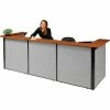 The Interion® By Global Industrial Deluxe Freestanding Office Partitions provide versatile privacy for cubicles, reception spaces, call centers and more. Panels feature a wood accent which attaches to top of partition, trimming panels with a Cherry finish. Accent cap measures 1-1/2″H x 1-3/4″D. Panels are made using 1-3/4″ thick fabric upholstered panel with an MDF frame and honeycomb core covered with heavy tackable liner for structural strength. Panel trim is finished with self-extinguishing extruded polymer for optimum safety and rigidity. Panels are flame retardant to meet the California 117 flammability standard. Steel T-legs ensure reliable freestanding stability, and make panels easy to adjust and rearrange. 1 Year Limited Warranty.