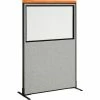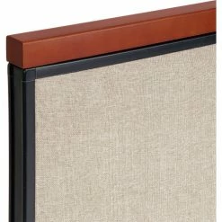 The Interion® By Global Industrial Deluxe Freestanding Office Partitions provide versatile privacy for cubicles, reception spaces, call centers and more. Panels feature a wood accent which attaches to top of partition, trimming panels with a Cherry finish. Accent cap measures 1-1/2″H x 1-3/4″D. Panels are made using 1-3/4″ thick fabric upholstered panel with an MDF frame and honeycomb core covered with heavy tackable liner for structural strength. Panel trim is finished with self-extinguishing extruded polymer for optimum safety and rigidity. Panels are flame retardant to meet the California 117 flammability standard. Steel T-legs ensure reliable freestanding stability, and make panels easy to adjust and rearrange. 1 Year Limited Warranty.