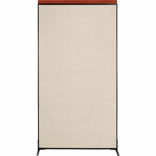 The Interion® By Global Industrial Deluxe Freestanding Office Partitions provide versatile privacy for cubicles, reception spaces, call centers and more. Panels feature a wood accent which attaches to top of partition, trimming panels with a Cherry finish. Accent cap measures 1-1/2″H x 1-3/4″D. Panels are made using 1-3/4″ thick fabric upholstered panel with an MDF frame and honeycomb core covered with heavy tackable liner for structural strength. Panel trim is finished with self-extinguishing extruded polymer for optimum safety and rigidity. Panels are flame retardant to meet the California 117 flammability standard. Steel T-legs ensure reliable freestanding stability, and make panels easy to adjust and rearrange. 1 Year Limited Warranty.