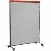 The Interion® By Global Industrial Deluxe Freestanding Office Partitions provide versatile privacy for cubicles, reception spaces, call centers and more. Panels feature a wood accent which attaches to top of partition, trimming panels with a Cherry finish. Accent cap measures 1-1/2″H x 1-3/4″D. Panels are made using 1-3/4″ thick fabric upholstered panel with an MDF frame and honeycomb core covered with heavy tackable liner for structural strength. Panel trim is finished with self-extinguishing extruded polymer for optimum safety and rigidity. Panels are flame retardant to meet the California 117 flammability standard. Steel T-legs ensure reliable freestanding stability, and make panels easy to adjust and rearrange. Windows are made of translucent polycarbonate material which allows light to come in while still maintaining privacy. 1 Year Limited Warranty.