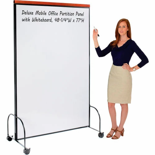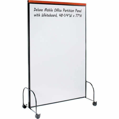 Interion® Deluxe Mobile Office Partition Panel with Whiteboard, 48-1/4″W x 77″H