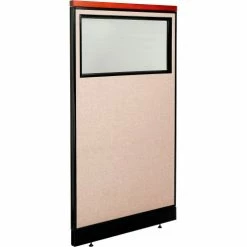 Interion® Deluxe Office Partition Panel with Partial Window & Pass-Thru Cable, 36-1/4″W x 65-1/2″H, Tan