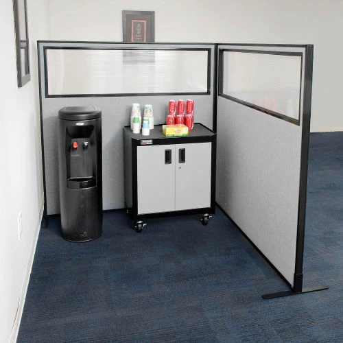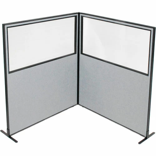 Interion By Global Industrial Interion® Freestanding 2-Panel Corner Room Divider w/Partial Window 60-1/4"W x 72"H Panels Gray