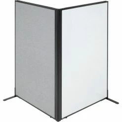 Interion By Global Industrial Interion® Freestanding 2-Panel Corner Room Divider with Whiteboard, 36-1/4"W x 60"H, Gray