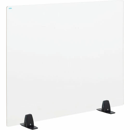 Provide a simple solution to personal protection for employees and patrons with the Interion® Freestanding Clear Desk Divider. Its durable, acrylic material is easy to clean and helps to block direct passages of airborne particulates when communicating with customer. The steel base is free standing and ensures the shield stays in place, blending seamlessly into any setting. 3-Year Limited Warranty.