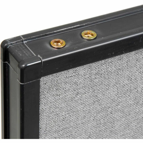 Furnish the office or any workspace with these convenient and reliable office partitions. The Interion® Freestanding Office Partition Panels provide versatile privacy for cubicles, reception spaces, call centers and more. Panels are made using 1-3/4″ thick fabric upholstered panel with an MDF frame and honeycomb core covered with heavy tackable liner for structural strength. Panel trim is finished with self-extinguishing extruded polymer for optimum safety and rigidity. Panels are flame-retardant to meet the California 117 flammability standard. Steel T-legs ensure reliable freestanding stability, and make panels easy to adjust and rearrange. Partition measures 24-1/4″W x 96″H. 1-Year Limited Warranty.