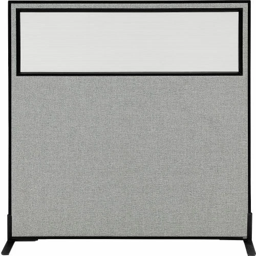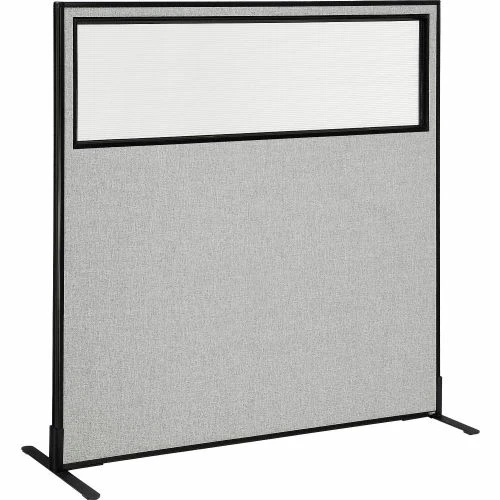 Interion By Global Industrial Interion® Freestanding Office Partition Panel with Partial Window, 60-1/4"W x 60"H, Gray