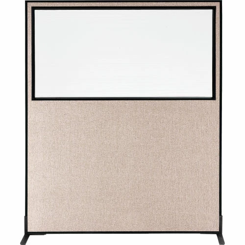 Interion By Global Industrial Interion® Freestanding Office Partition Panel with Partial Window, 60-1/4"W x 72"H, Tan