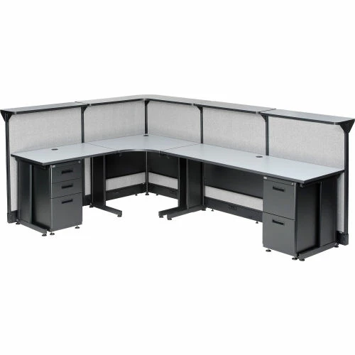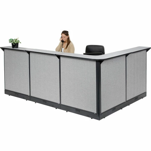 Interion By Global Industrial Interion® L-Shaped Electric Reception Station, 116"W x 80"D x 46"H, Gray Counter, Gray Panel