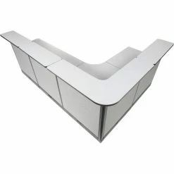 L-Shaped Electric Reception Station, 116″W x 80″D x 46″H, Gray Counter, Gray Panel