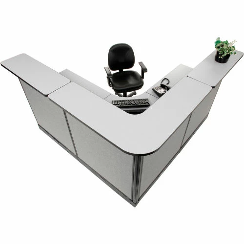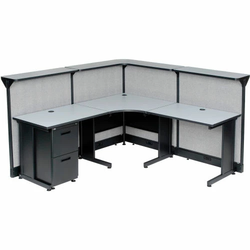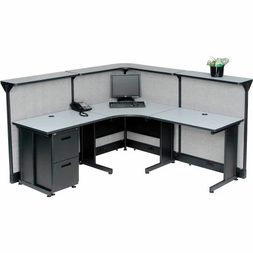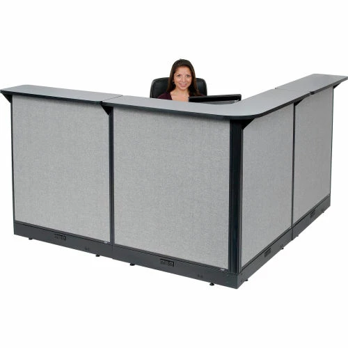 Interion By Global Industrial Interion® L-Shaped Electric Reception Station, 80"W x 80"D x 46"H, Gray Counter, Gray Panel