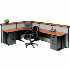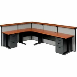Be the first to review “Interion By Global Industrial Interion® L-Shaped Reception Station, 116"W x 80"D x 44"H, Cherry Counter, Gray Panel” Cancel reply