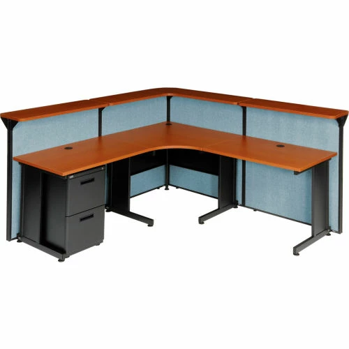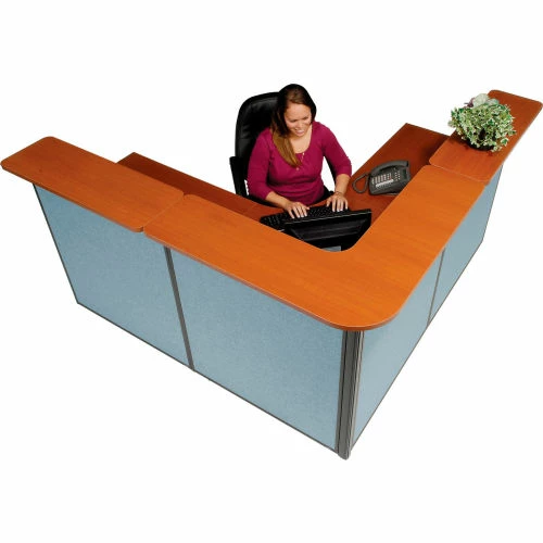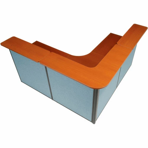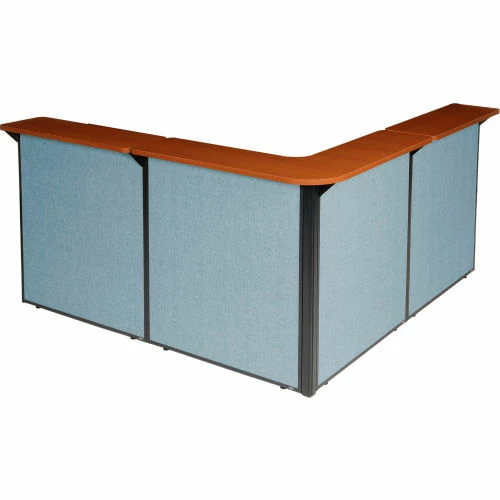 Interion By Global Industrial Interion® L-Shaped Reception Station, 80"W x 80"D x 44"H, Cherry Counter, Blue Panel