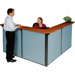 Be the first to review “Interion By Global Industrial Interion® L-Shaped Reception Station, 80"W x 80"D x 44"H, Cherry Counter, Blue Panel” Cancel reply