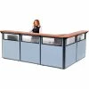 Interion By Global Industrial Interion® L-Shaped Reception Station, 80"W x 80"D x 44"H, Cherry Counter, Gray Panel