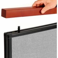 Interion® By Global Industrial Mobile Partition Panels allow you to divide a work area in any office or commercial setting. Each double sided unit has tackable fabric and is flame retardant to meet the California 117 flammability standard. 1-3/4″ thick upholstered panel features an interior engineered wood (MDF) frame and honeycomb core for structural strength and support. Panel trim is finished with self-extinguishing extruded polymer that offers optimum safety and rigidity. Mobile Panels sit atop steel T-legs on sturdy 3″ swivel casters (all locking) that provide full mobility and allow easy transport from area to area. Deluxe models include a cherry finished wood cap which measures 1-1/2″H x 1-3/4″D. Coordinates with Interion®’s complete line of office partition panels. 1 Year Limited Warranty.