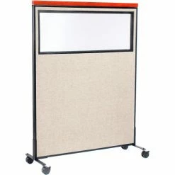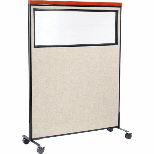 Interion By Global Industrial Interion® Mobile Deluxe Office Partition Panel with Partial Window, 48-1/4"W x 64-1/2"H, Tan