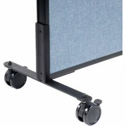 Interion® By Global Industrial Mobile Partition Panels allow you to divide a work area in any office or commercial setting. Each double sided unit has tackable fabric and is flame retardant to meet the California 117 flammability standard. 1-3/4″ thick upholstered panel features an interior engineered wood (MDF) frame and honeycomb core for structural strength and support. Panel trim is finished with self-extinguishing extruded polymer that offers optimum safety and rigidity. Mobile Panels sit atop steel T-legs on sturdy 3″ swivel casters (all locking) that provide full mobility and allow easy transport from area to area. Coordinates with Interion®’s complete line of office partition panels. 1 Year Limited Warranty.