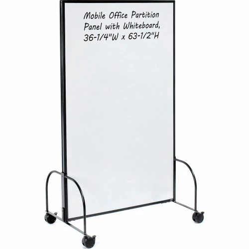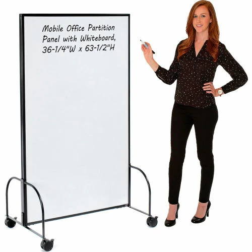Interion By Global Industrial Interion® Mobile Office Partition Panel with 2-Sided Whiteboard, 36-1/4"W x 63-1/2"H