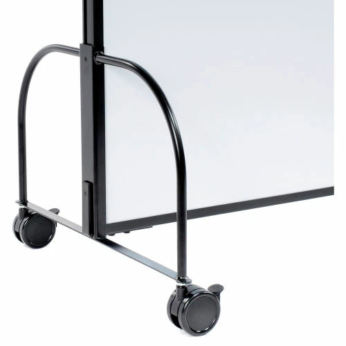 Mobile Double-Sided Whiteboards are multi-functional and can double as portable working space or a room divider. Perfect for collaborative teamwork, this panel is easily transported from area to area. 1-3/4″ thick panel features double-sided full painted metal magnetic whiteboards on both sides, which allow you to write smoothly with no ghosting. Use heavy duty magnets to hang notes, ideas and reminders. Panel trim is finished with self-extinguishing extruded polymer that offers optimum safety and rigidity. Mobile Whiteboards sit atop steel U-legs on sturdy 3″ swivel casters (all locking) that are able to sustain frequent use. Brand is Interion® By Global Industrial. 1 Year Limited Warranty.