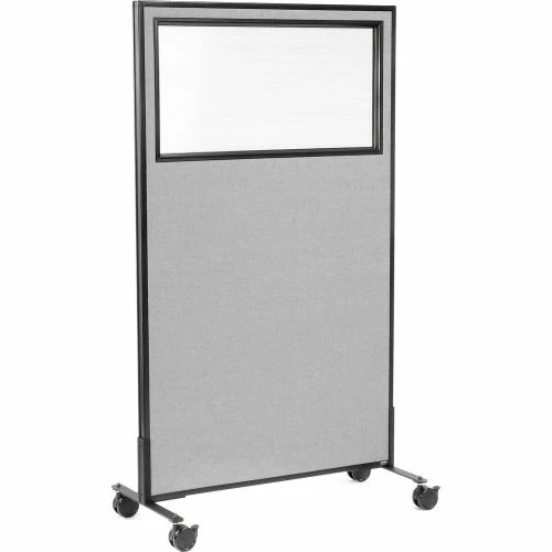 Interion By Global Industrial Interion® Mobile Office Partition Panel with Partial Window, 36-1/4"W x 63"H, Gray