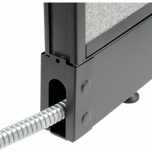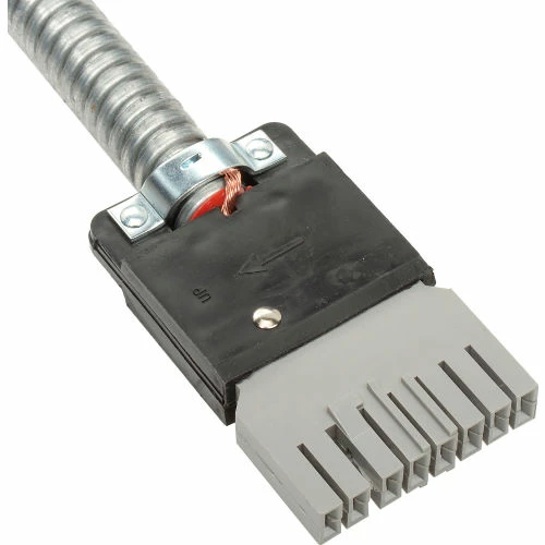 Plug-in cable features a single circuit, circuit 1, plug-in end with 115V, 20 Amp plug (15A adapter included). This 72L plug-in cable allows a maximum of 20 receptacles (16 receptacles using 15A plug) to be powered on a single cable. Plug-in cable easily plugs into an existing wall outlet for a power source. Connector end easily plugs into a double-sided power box, located in Panels with Electric Raceways (sold separately). Cable is made of galvanized steel metal flex covering with insulation rated at 600 volts.