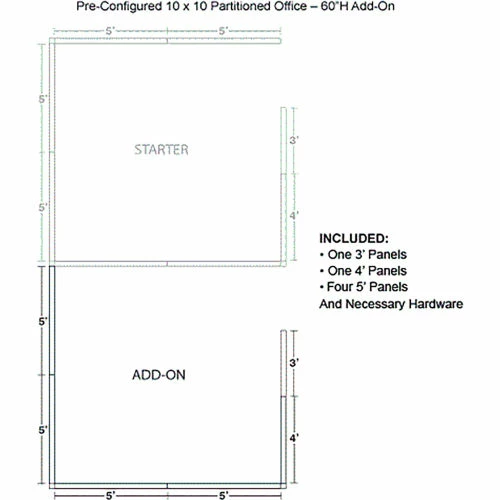 Blue partition panels help reduce noise, create privacy & use space efficiently. Use Interion® By Global Industrial Pre-Configured Partitioned Offices to create private office spaces, cubicles, reception stations and call centers for any office environment. Panels are flame retardant to meet the California 117 flammability standard. 1-5/8 thick fabric upholstered panel features an interior engineered wood (MDF) frame and honeycomb core covered with heavy tackable liner for structural strength and support. Panel trim is finished with self-extinguishing extruded polymer that offers optimum safety and rigidity. Partitioned Office includes one 3′ panel, one 4′ panel, four 5′ panels and necessary hardware. Partition panels include adjustable leveling feet that are ideal for uneven surfaces. Easy assembly. 1 Year Limited Warranty.