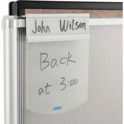 Accomplish more and improve employee productivity with the Interion® Rolling Privacy Screen For Partition Panels 60″H or higher. This full-length rolling privacy screen is made of durable aluminum construction and is lightweight enough to transform cubicle areas into interruption-free work zones. The sleek and modern design blends well into any office setting while the translucent screen allows natural light to shine through. Fits on partitions between 1.25″ – 1.7″ thick. Includes a nameplate, wall bracket, and one small acrylic whiteboard. 3-Year Limited Warranty.