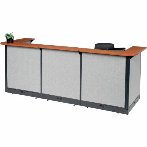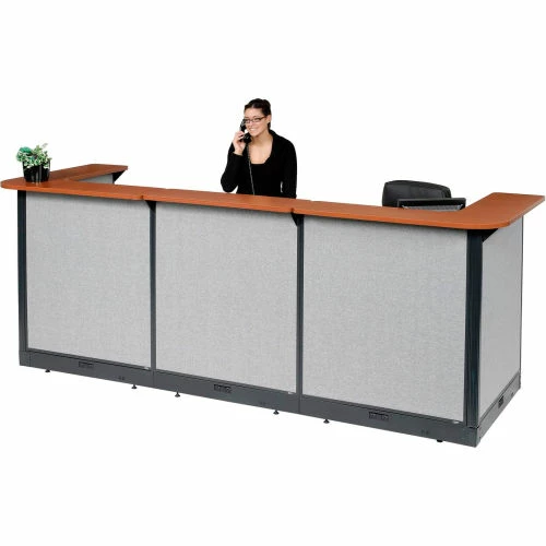 U-Shaped Electric Reception Station, 124″W x 44″D x 46″H, Cherry Counter Gray Panel