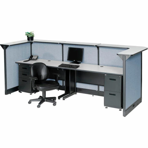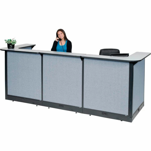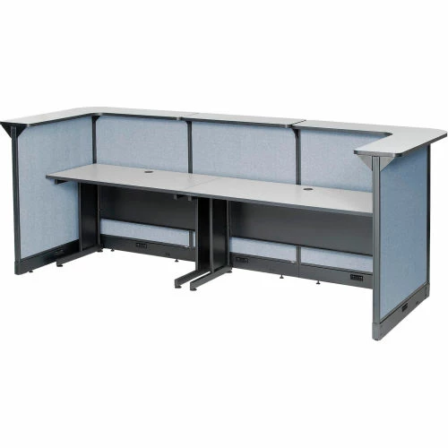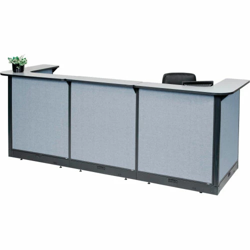 U-Shaped Electric Reception Station, 124″W x 44″D x 46″H, Gray Counter, Blue Panel